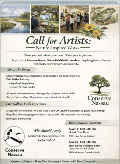 Conserve Nassau is creating field guides documenting Florida natural systems and the species that occupy them. Our coastal county spans the Atlantic Ocean to the St. Mary’s River and comprises a diversity of habitats and unique species. However, there is a gap in knowledge about Nassau County’s biodiversity.